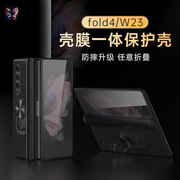 适用三星fold4手机壳真皮折叠屏保护套商务男款Galaxy z fold4指环支架心系天下W23磁吸铰链全包防摔壳膜一体