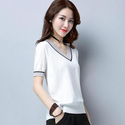 8 白色v领t恤女2019新款半袖体桖宽松体恤夏天短袖上衣服冰丝针织衫 39.80 详情
