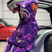 潮牌秋冬新款L0BAPE20SS迷彩猿人头连帽鲨鱼头拉链情侣款男女卫衣