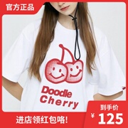 韩国代购新款kirsh樱桃笑脸T恤女ins短袖韩版宽松圆领上衣