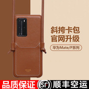 华为mate30手机壳斜挎限量版高档mate30pro曲屏适用带挂绳脖p40pro女款网红p30潮牌celine皮质背包式创意30e