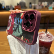 玫红气垫波浪边苹果14手机壳新款iphone14promax高级感14plus苹果13套12全包镜头11防摔ProMax女Pro硅胶适用