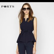PORTS宝姿女装新品系带撞色显瘦通勤优雅连衣裙LM8D258NWB011