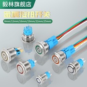 12 16 19 22MM金属按钮开关带灯自锁复位防水启动电源不锈钢按键