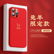 适用苹果14手机壳新款红色iPhone13pro兔年x硅胶xr全包防摔iPone12max新年8软壳ip11pm过年2023本命年7plus套