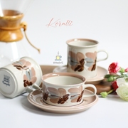 Arabia Koralli 粉珊瑚 芬兰中古手绘咖啡可可宽口茶杯餐盘稀少款