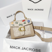 香港MACKJACROSE新款泫雅酒神包花卉刺绣手提包真皮女单肩斜挎包