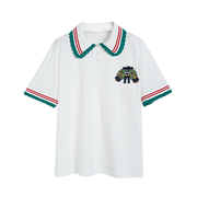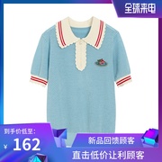 海乌丫2021夏季短袖宽松显瘦POLO领绣花针织T恤上衣女 UY125T1147
