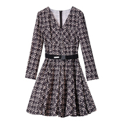 彩云地素21年夏V领长袖印花大摆法式复古休闲连衣裙女潮2D2O5026A