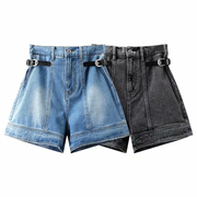 芷乌丫21夏季新款复古水洗可调节高腰薄牛仔阔腿短裤潮UY127N3043