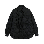 乌丫奢九2021秋冬新款复古国潮中式盘扣蝴蝶结绑带羽绒服气质外套