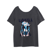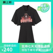 海乌丫21夏季灰色宽松显瘦卡通绣花女针织圆领短袖T恤UY125L1114