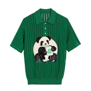 芷乌丫21夏李佳琦宽松显瘦绿色复古熊猫镂空针织Polo衫t恤上衣女