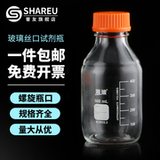 蜀牛/湘玻透明棕色玻璃橙盖蓝盖试剂瓶实验室丝口瓶螺口带刻度带盖密封瓶100 250 500ml教学仪器化学实验器材