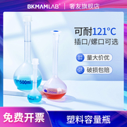 比克曼生物塑料容量瓶聚乙烯平口螺口带盖PP聚丙烯实验室定容瓶摇瓶液体分装瓶25 50 100 250 500 1000ML毫升