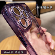适用苹果13promax手机壳自带镜头膜透明高清14promax新款男女iphone12梅子红紫色防摔软边网红带镜片简约商务