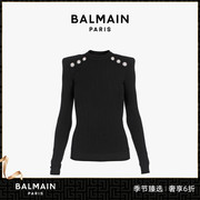 BALMAIN/巴尔曼 圆领纽扣缀饰坑条纹黑色女士长袖针织衫上衣