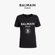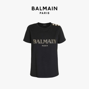 BALMAIN/巴尔曼 圆领烫金徽标印纹经典LOGO女士短袖T恤上衣