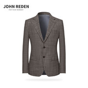 JOHN REDEN男士夏季单排扣修身休闲西装外套深灰色刺绣时尚西服