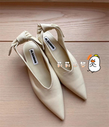 代购Jil sander 21早春新款鹅黄色蝴蝶结绑带尖头平底鞋芭蕾舞鞋