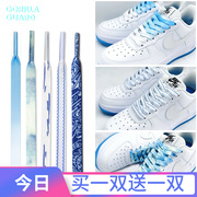 适配空军一号AF1白蓝热感应蓝白蓝粉蓝色缝线涂鸦腰果花扎染鞋带