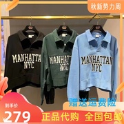 Moussy国内代购2022秋冬新款日系字母印花翻领卫衣010FAL90-5540
