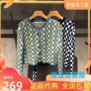 MOUSSY国内代购 2022秋冬新款撞色格纹短针织开衫028FAZ70-5070