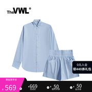 VWL衬衫短裤套装 宽松薄款女款女士新款夏季蓝色黑色上衣时尚洋气