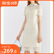 音儿商场同款女2021夏季新款修身POLO领钩花蕾丝连衣裙8C60205116