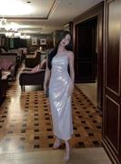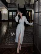 Hylauo Closet 尾牙战袍 冷银月白色连衣裙女春秋高级感设计裙子