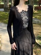 Hylauo Closet黑色蝉翼 是绑带上衣也是小开衫v领针织衫薄款女v领