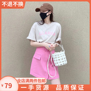 字母印花t恤女2021夏新款纯棉宽松短袖中长款体恤上衣1NH2026350