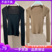 杨颖baby明星同款2021秋纯色方领长袖修身打底针织衫女1NY303150F