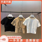 配链条短款t恤女2021新款夏修身短袖纯棉针织薄款上衣1NY1022650