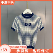小香风条纹针织衫女2021年新款夏字母提花薄款短袖上衣1NY103024F