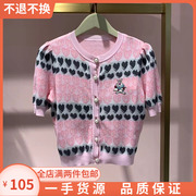 爱心卡通刺绣针织衫女2021新款夏冰丝短袖开衫短款上衣2NA1030350