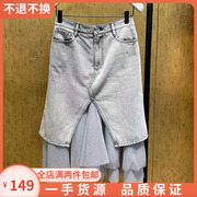 杨颖Baby同款2021新款夏高腰荷叶网纱开叉牛仔半身裙女1NY207169N