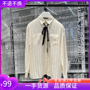 杨颖baby明星同款新款秋冬飘带提花纯色长袖衬衫上衣女1NH401545F