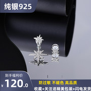 MLNGU Apm纯银镶晶钻六芒星不对称耳钉女气质流苏耳环原耳饰礼品0