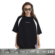 Mess Age Lab美式休闲运动T恤分割芽条撞色街头情侣短袖基础百搭