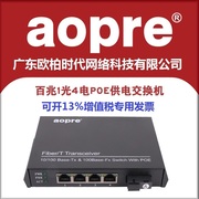 aopre广东欧柏时代百兆单纤4口poe供电光纤交换机兼容网络摄像机