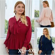 190斤女长袖甜美衬衣Plus Size White Blouse Women Long sleeves