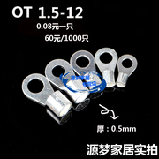 OT1.5-12 圆形裸端子 接线 冷压端子线耳 镀银线耳 1.5平方