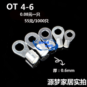 OT4-6 圆形裸端子 接线端子 冷压端子线耳 镀银线耳 4平方