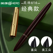 上海总厂英雄钢笔616黄帽中小号中小学生用作业书法练字铱金暗尖钢笔复古款大学生练字钢笔怀旧经典款书法笔