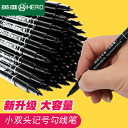 英雄记号笔小双头勾线笔儿童绘画幼儿园描边美术专用小学生黑色油性细头马克速干防水防油不掉色两头887