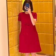 2022年春夏季新款复古红色连衣裙女裙子气质中长款炸街连衣裙子女