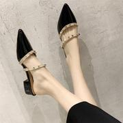 头层牛皮女土凉鞋20夏低中高跟鞋小码313233一字扣尖头大码凉拖鞋