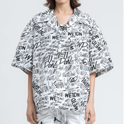高版!韩国潮牌WE11DONE字母涂鸦黑白宽松短袖衬衫男女同款2021SS