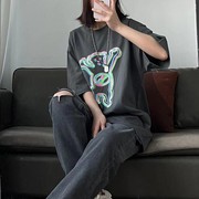 现货PUSHBUTTON 2022早春可爱哭泣美少女印花4色圆领宽松短袖T恤